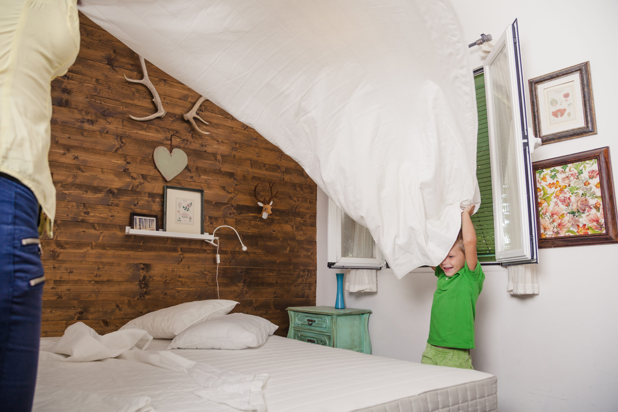 Phòng ngủ ấm cúng, điều hòa mát, nệm êm ái.